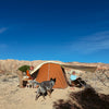 Our most versatile fly to date, the Compact Stormfly® is a big upgrade for our smallest tent. The dual awnings can be guyed out with awning poles (sold separately) for a shaded porch area, or guyed directly to the ground at a 45-degree angle for weather shedding. One wing can also be configured as a fully enclosed vestibule for cooking or gear storage.