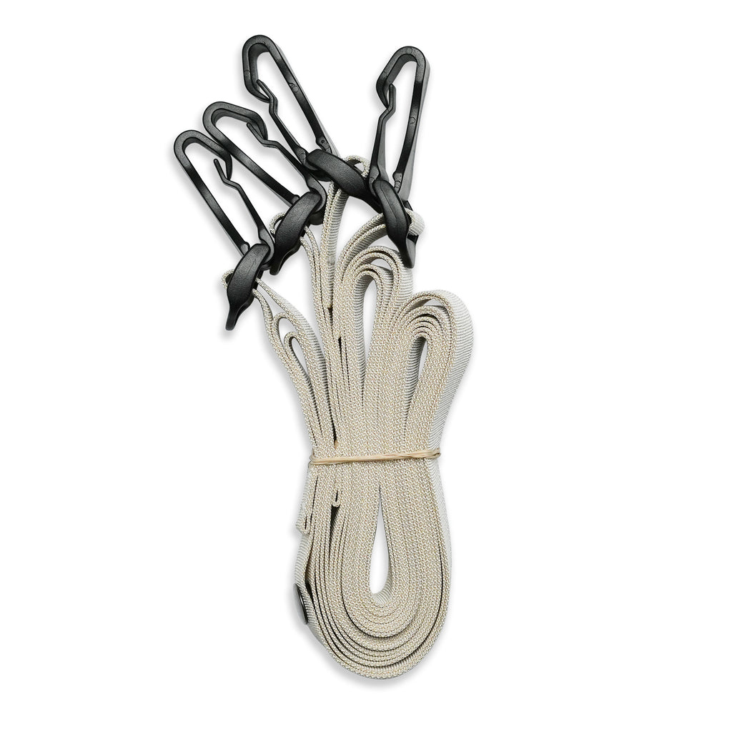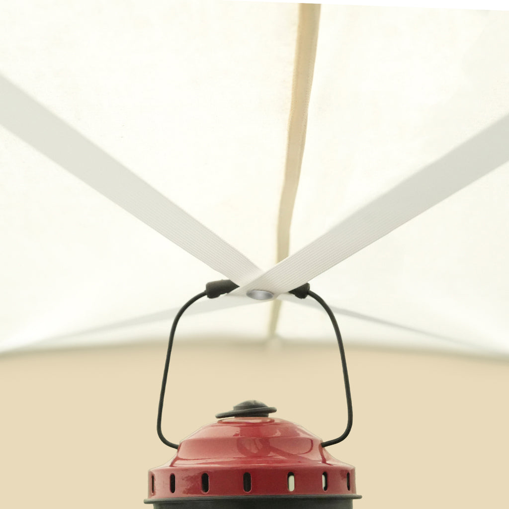 Compatible with most Springbar® Tent models, the Lantern Strap allows you to hang lighting and gear without impeding head room. Integrated clips attach to sewn rings found at the edges of the roof panel, adjustable tensioning and a center button ensures a secure fit.