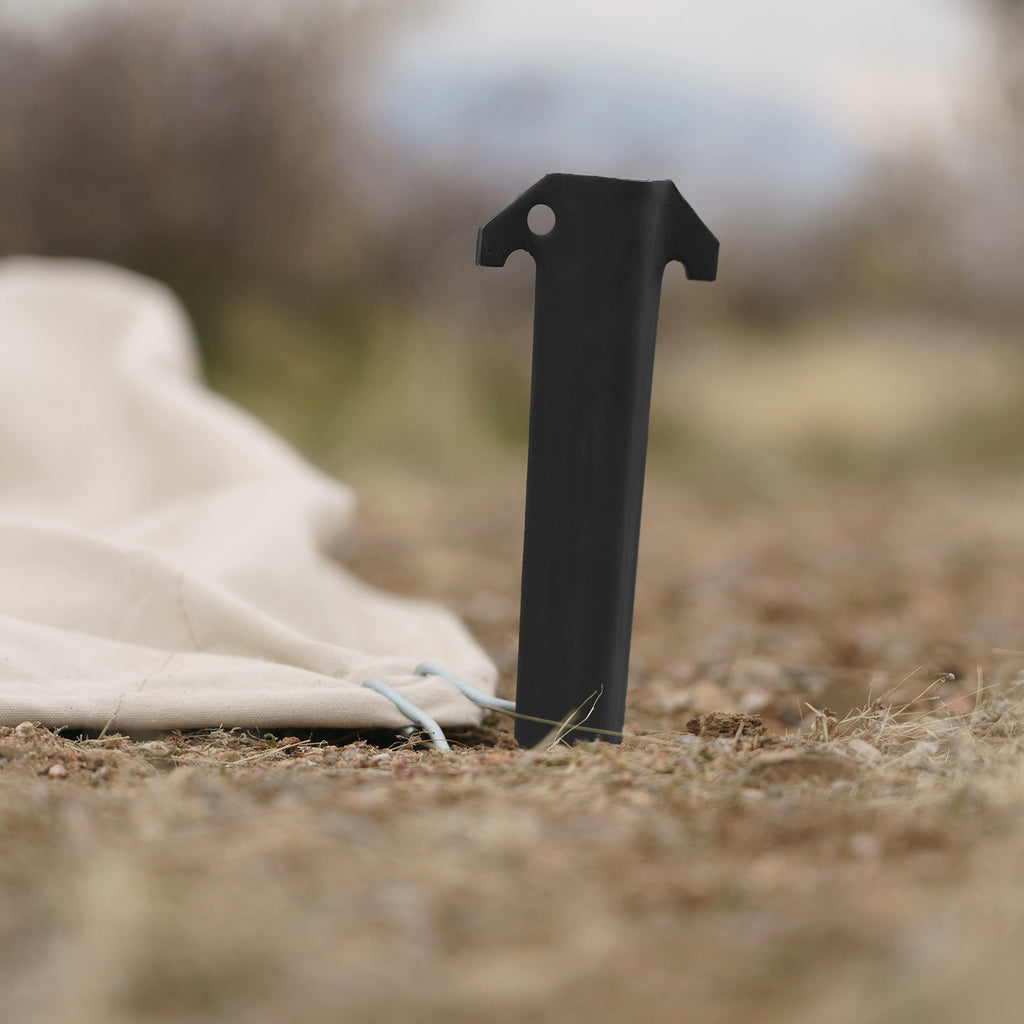 Made from solid aluminum, these stakes are incredibly strong, and the wedge shape lends excellent hold in both soft and hard soil. A Springbar staff favorite.