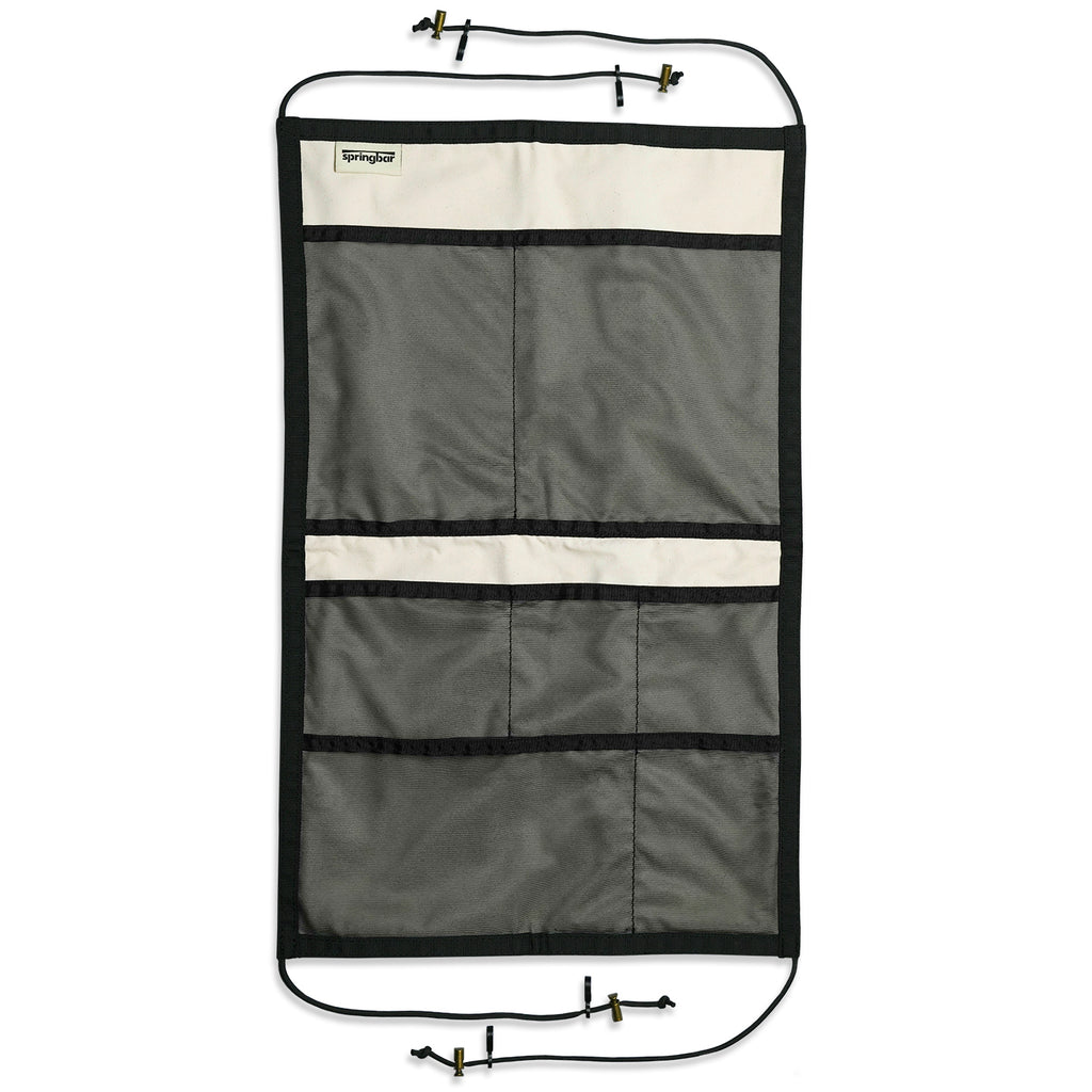 Designed to hang on any wall in your Springbar® Tent, the Hanging Organizer keeps camp essentials tidy and close at hand. Headlamps, pocket knives, playing cards, paperback books, clean socks—whatever small items you like to keep in the tent, the Hanging Organizer keeps them off the ground and at arms reach.