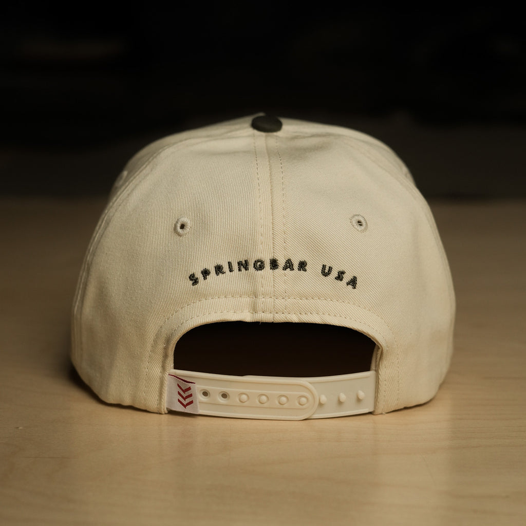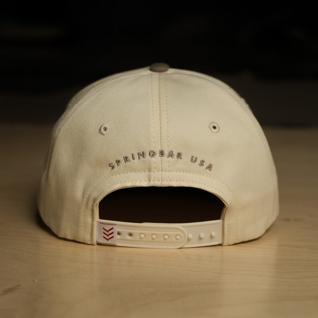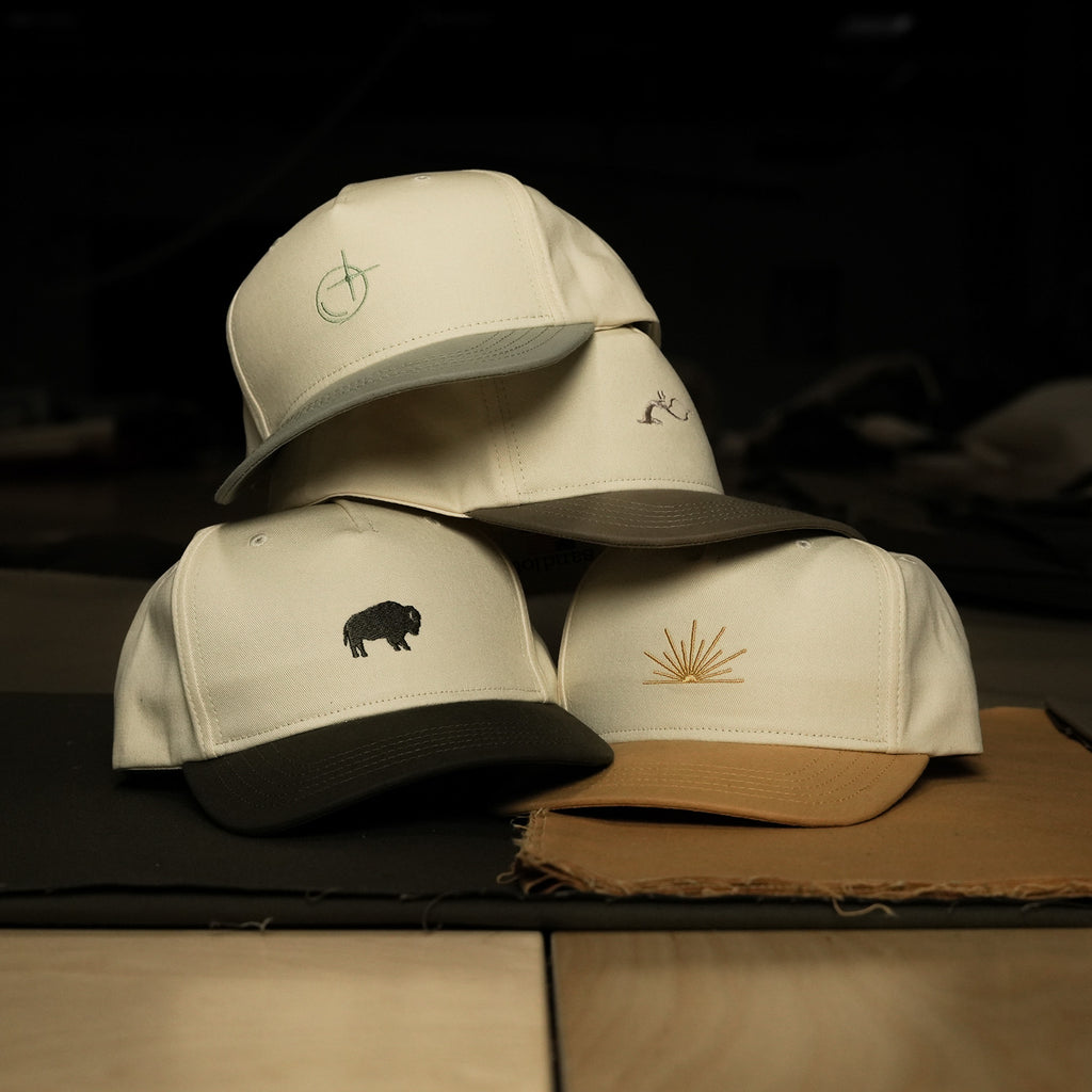 A classic USA-made five-panel ball cap, cut and sewn for us by Sandlot Goods in Kansas City. The brim and button on each of these caps are wrapped with Springbar® tent canvas, and the front panel is embroidered with the corresponding color icon.