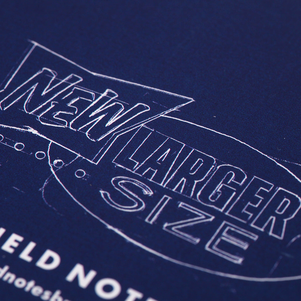 These note books are a new size for us; a handy 6" × 8." The 64 pages are graph-ruled in "Non-Repro Blue", a particular shade that is still used in the graphic arts industry to be easily removed from photostats or scans of black-and-white artwork. As usual, the inside covers are full of historical information, illustrations, and wise-cracking.